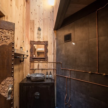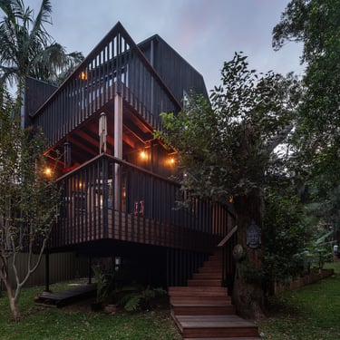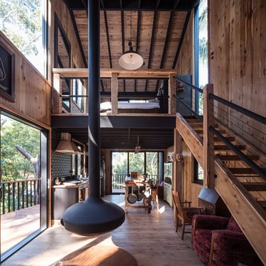 This cabin design was commissioned by a famous local artist, and is a perfect definition of the intersecting points where careful design meets art. The clients adventurous spirit and love of the earthy tones neatly translated into this whimsical yet elegant outcome.