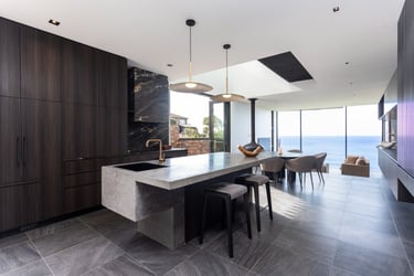 A bespoke coastal residence designed to embrace ocean views, with durable materials and seamless indoor-outdoor flow, crafted in close collaboration with local builders.