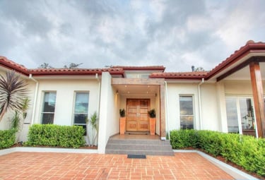 Custom hillside home balancing structure and simplicity, using natural stone and timber to blend with the landscape, ensuring buildability and council approval.